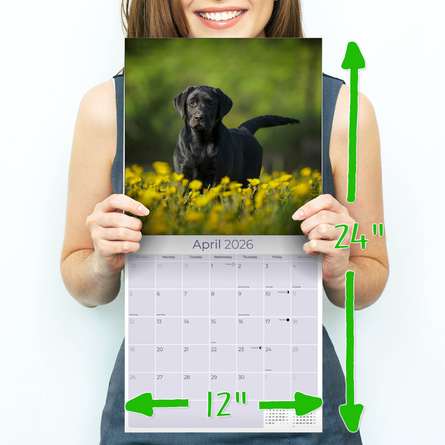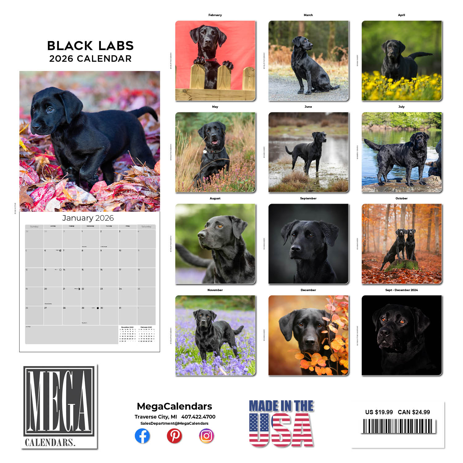 One of the most popular canine companions, the Lab is beautifully portrayed in the Black Labrador Retriever Calendar 2026. Each month showcases a large color photo and grid spaces to list your special dates an anniversaries. This calendar makes a welcome addition to your workplace or home with its professional photography of these gentle and intelligent dogs.