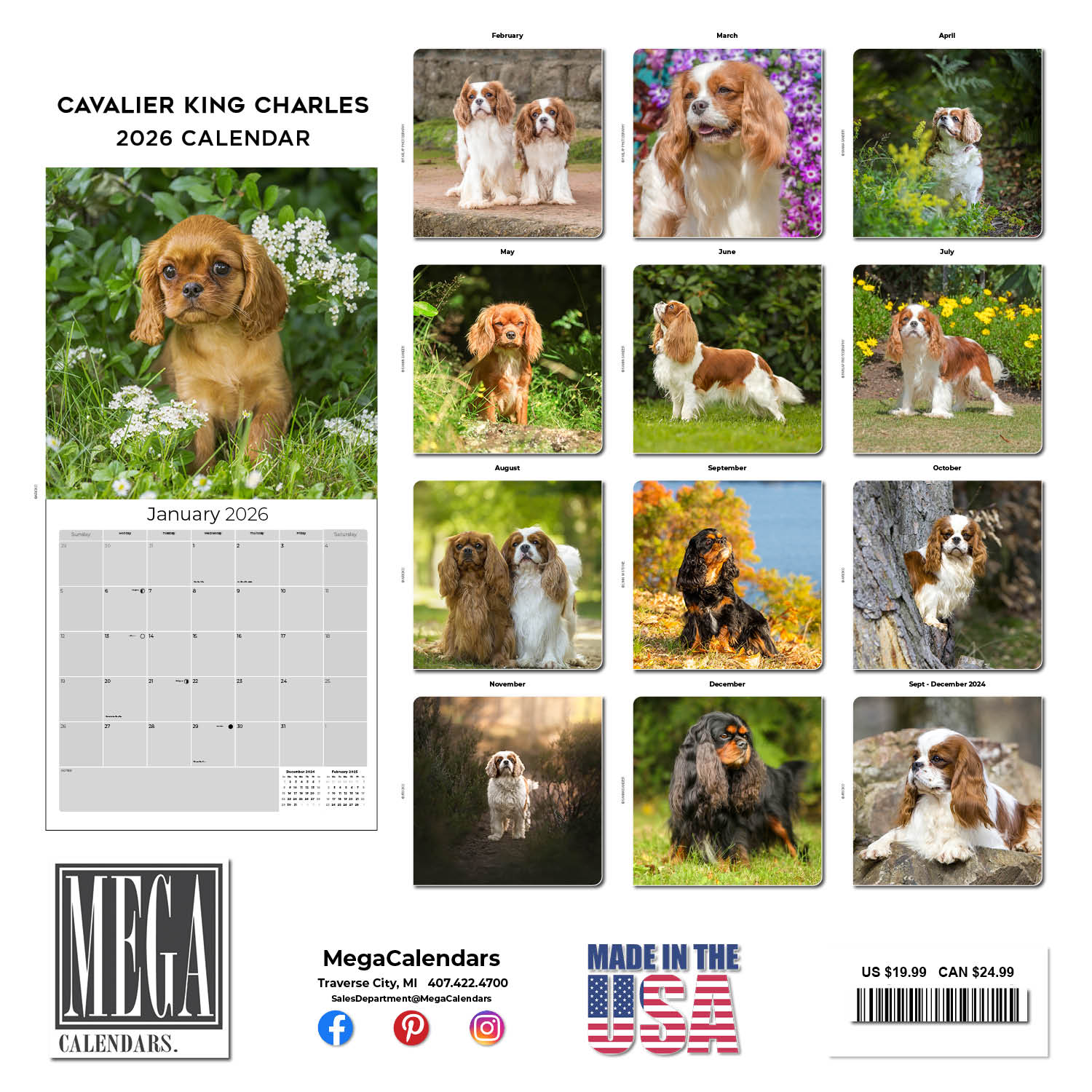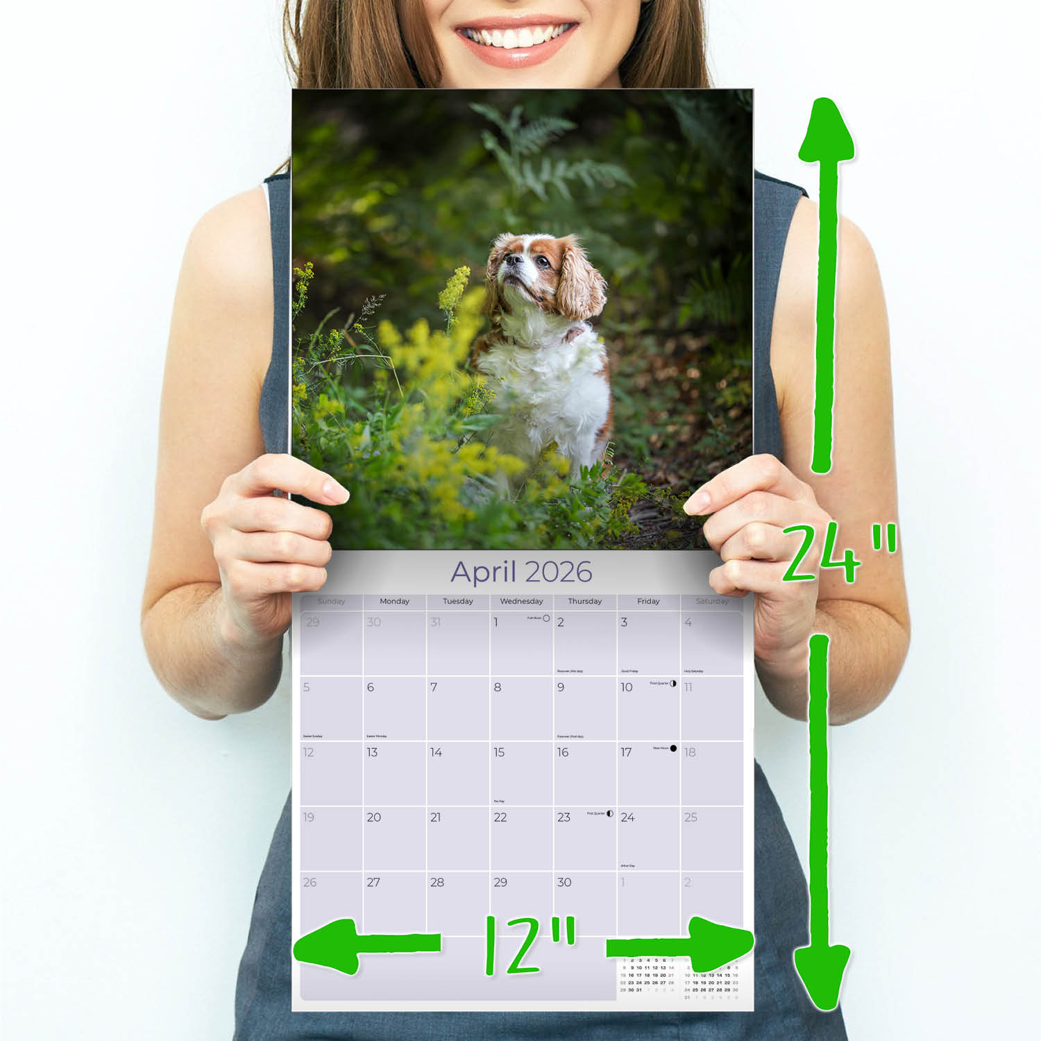 Both cuddly and elegant, friendly Cavaliers grace each month of the Cavalier King Charles Spaniel Calendar 2026. Each adorable pose reveals their sweetness. Keep track of the most important dates of the year in the daily grids with ample space to record every occasion. This calendar is expertly printed with large photos in a 12 x 12 format.