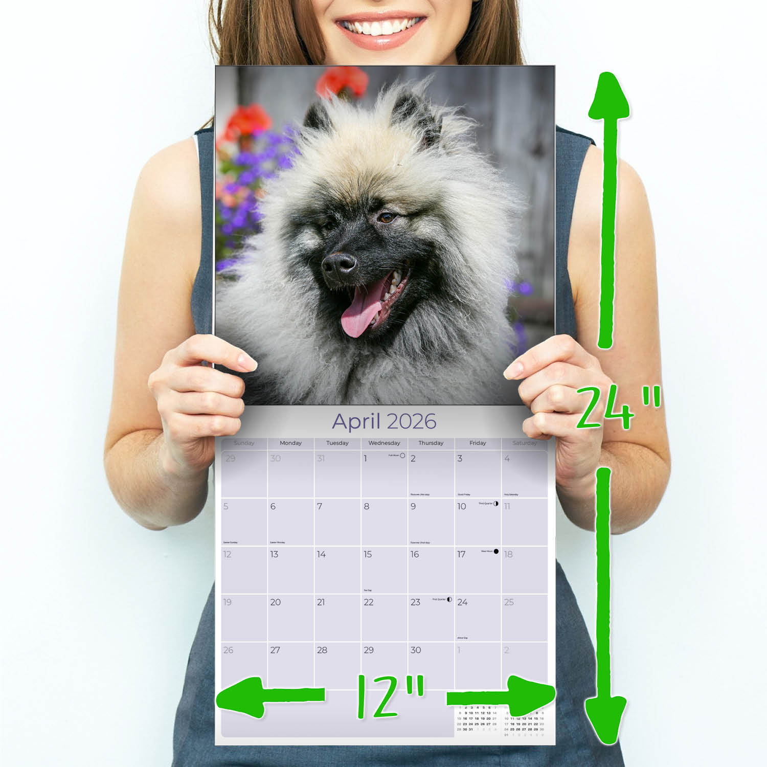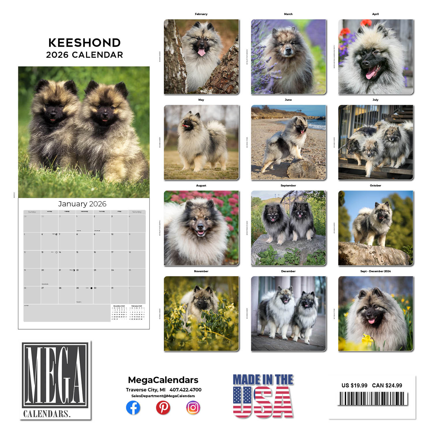 The Keeshond Calendar 2026 captures the outgoing and energetic personalities of a wide variety of these good-natured dogs. Along with the full color photos, you can record your most important dates and occasions on the spacious grids of this large, 12 x 12 format calendar. These cute animals will make a darling decorative accent for your home or office.