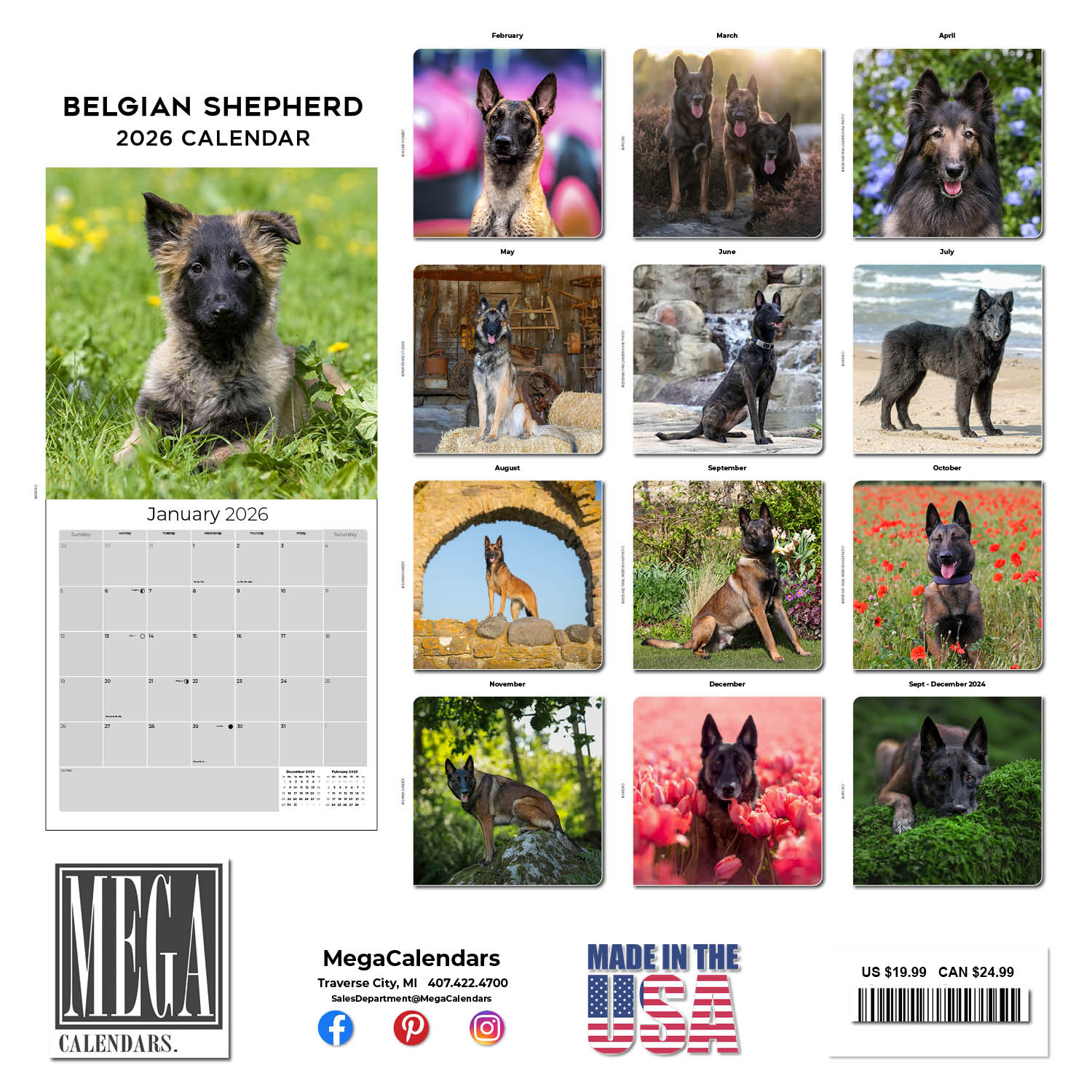 The Belgian Shepherd Dog Calendar 2026 is the perfect calendar for the herding dog fan. Thirteen stunning photos of these playful and alert dogs are accompanied by large daily grids where you can record your appointments. The large 12 x 12 size makes a distinctive accessory at home or office.