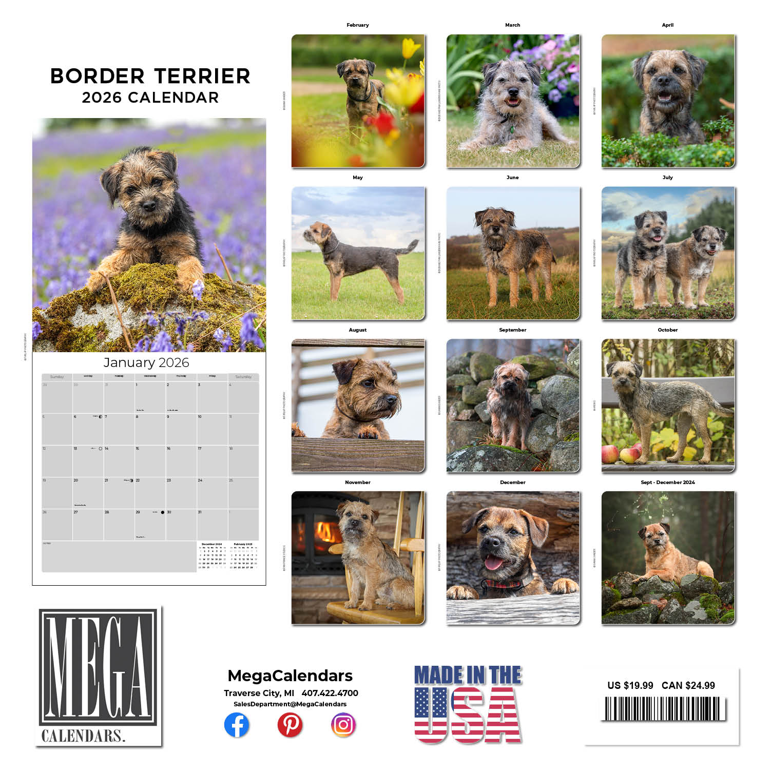 The Border Terrier Calendar 2026 is the perfect calendar for the terrier lover in your home. Each month has large grids which are ample enough to record all your appointments and important celebrations. This calendar offers thirteen charming photographic portraits of this good tempered and affectionate dog in beautiful full color printed on premium grade paper.