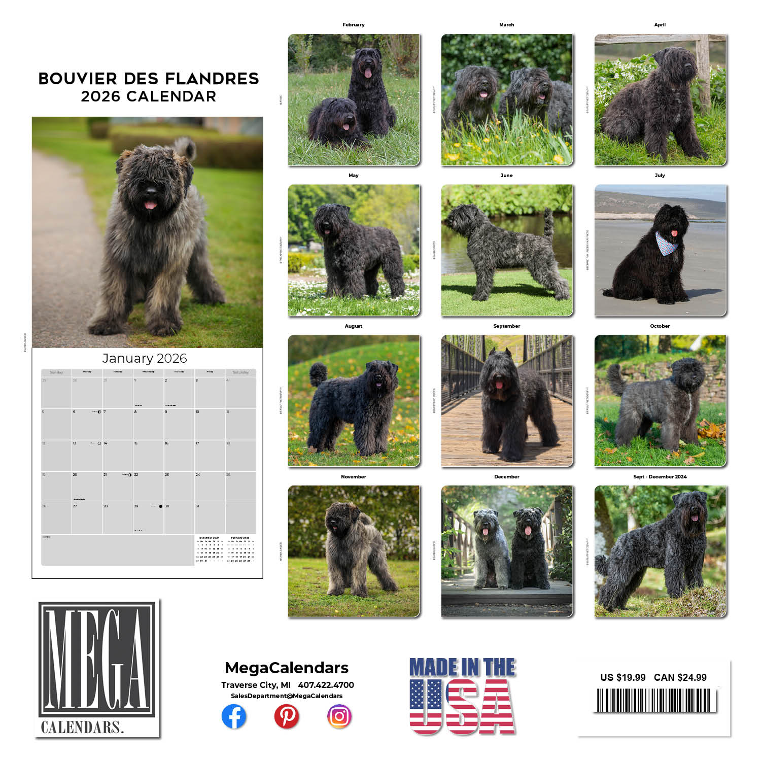 The even temperament of the Bouviers is expertly photographed for the Bouvier Des Flanders (Euro) Calendar 2026. Each photo reveals the grace of this large breed. Keep track of the important days of the year in the daily grids with enough space to record every occasion. This calendar is printed with large photos in a 12 x 12 format.