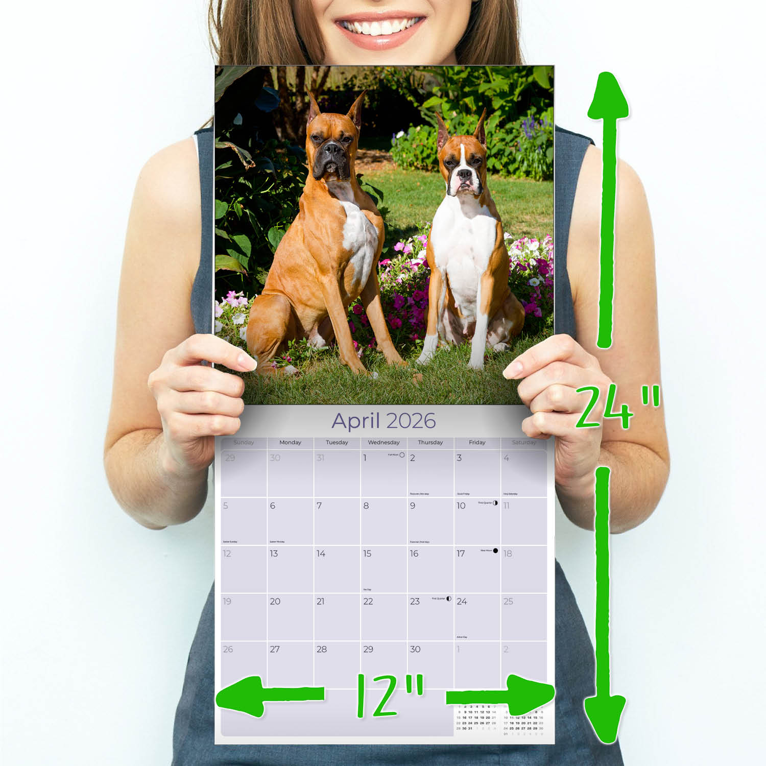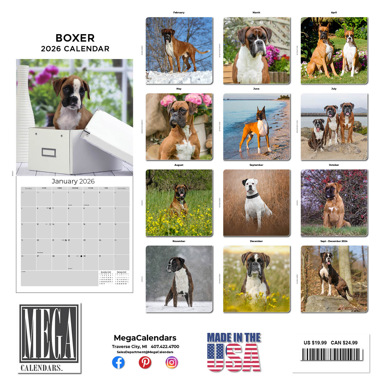 The Boxer Calendar 2026 presents thirteen engaging photos of this child-friendly and protective pet. Each month includes large grids where you can keep all your dates and appointments in order. Printed on high quality paper in 12 x 12 format, this calendar makes a useful decorative accessory for home or workplace.