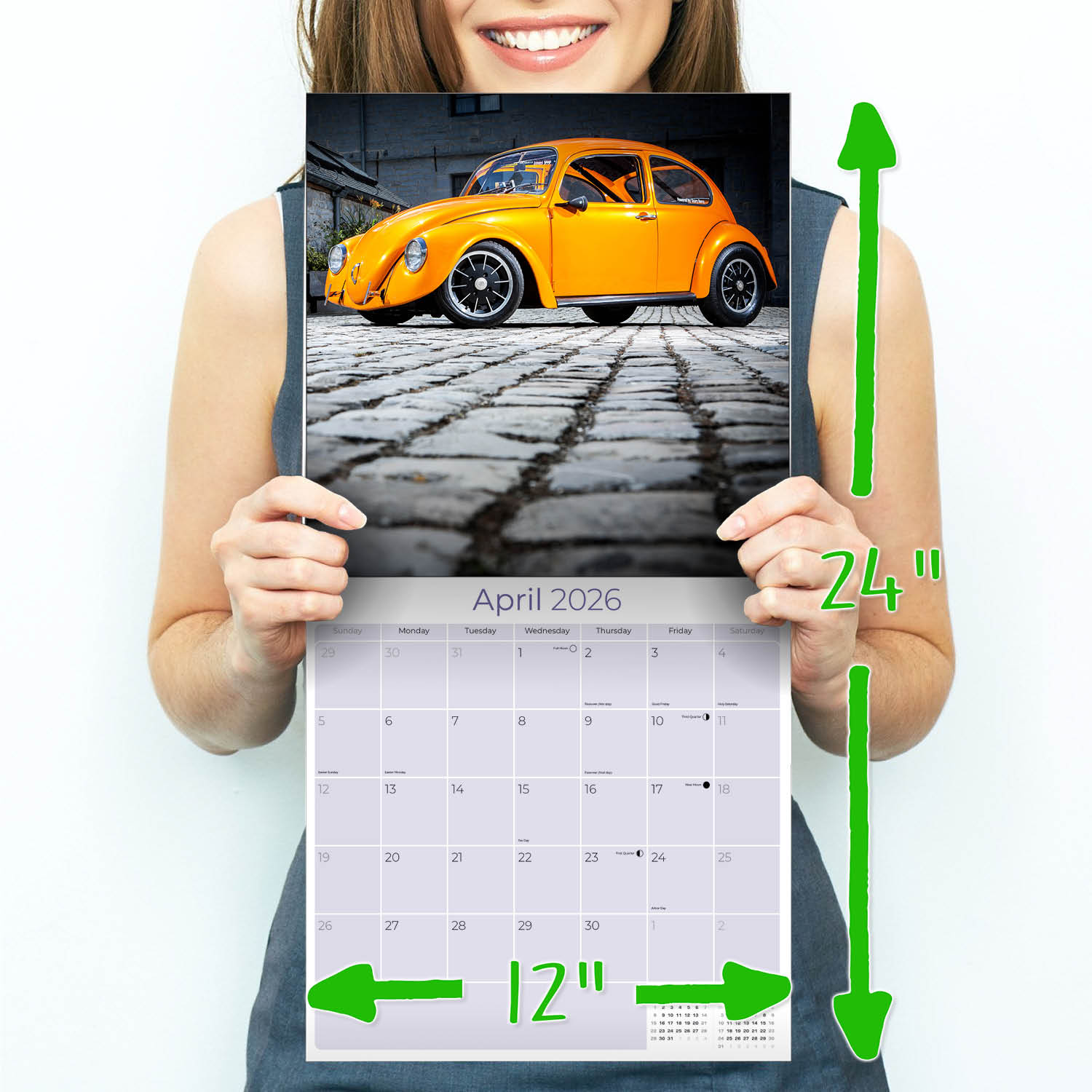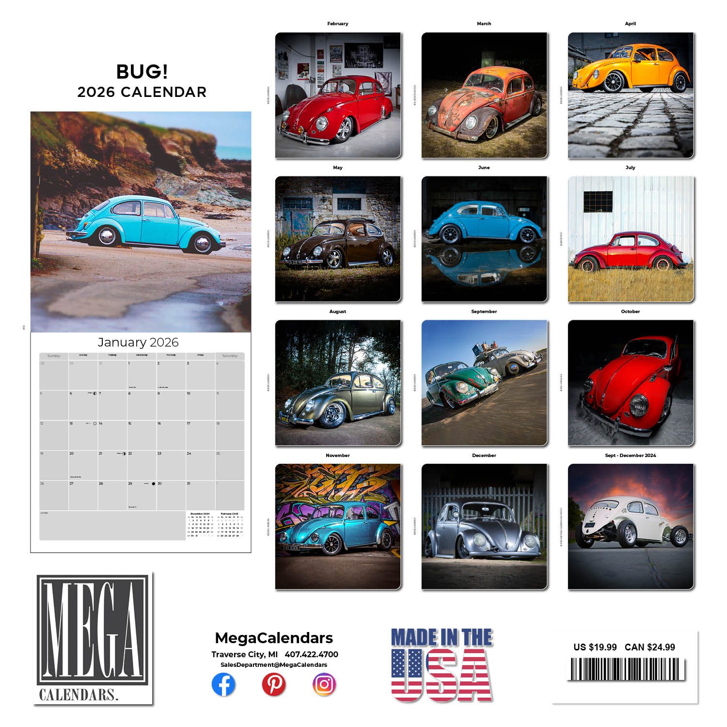 The Bug! Wall Calendar 2026 is the ideal organization tool for fans of this iconic vehicle. Enjoy twelve color spreads with a different photo each month and a calendar grid for writing down appointments and reminders. Enjoy this calendar on your home or office wall it opens to 12" x 24".