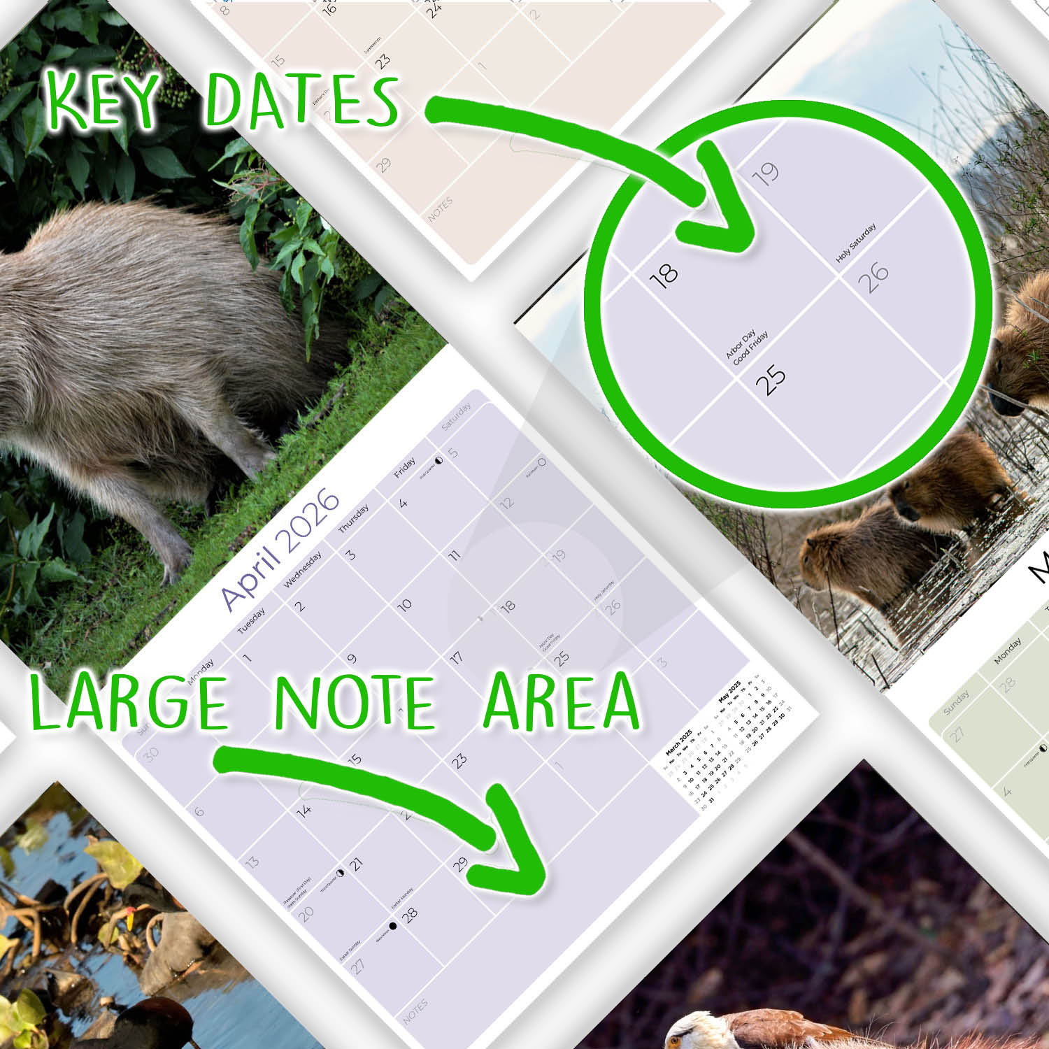 Capybara Calendar 2026 presents stunning up close photography of a wide array of these cavy rodents. Each month includes large grids where you can keep all your appointments and dates in order. Printed on high quality paper in 12 x 12 format, the calendar will make an interesting and colorful accent for your home or office decor.