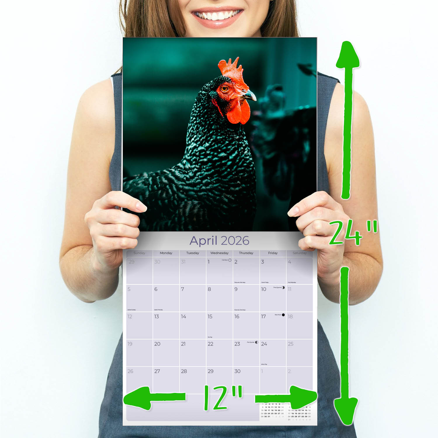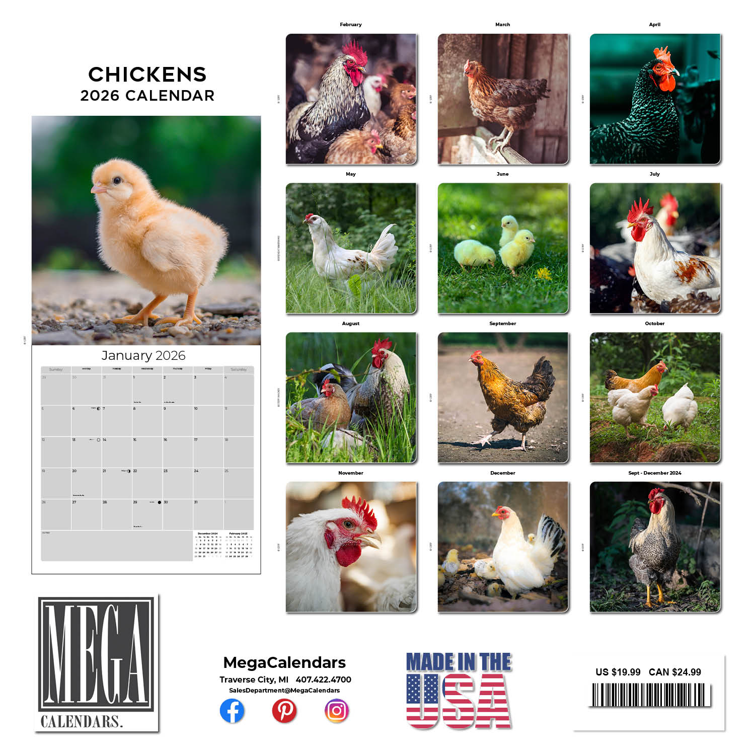 The perfect accent for fans of these farm animals, the Chickens Calendar 2026 showcases chickens in vivid photography each month of the year. Use the spacious grids in this 12 x 12 wall calendar to keep track of important appointments and occasions. Whether for home or office use, this calendar makes a delightful decorative item.