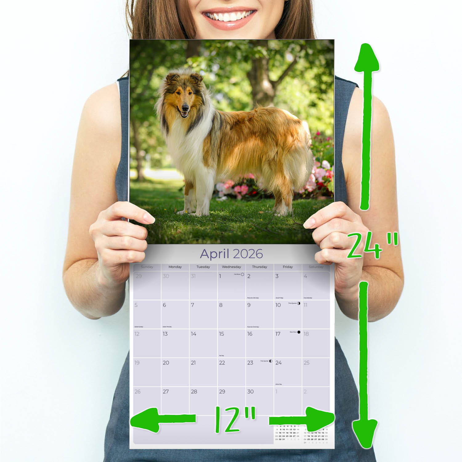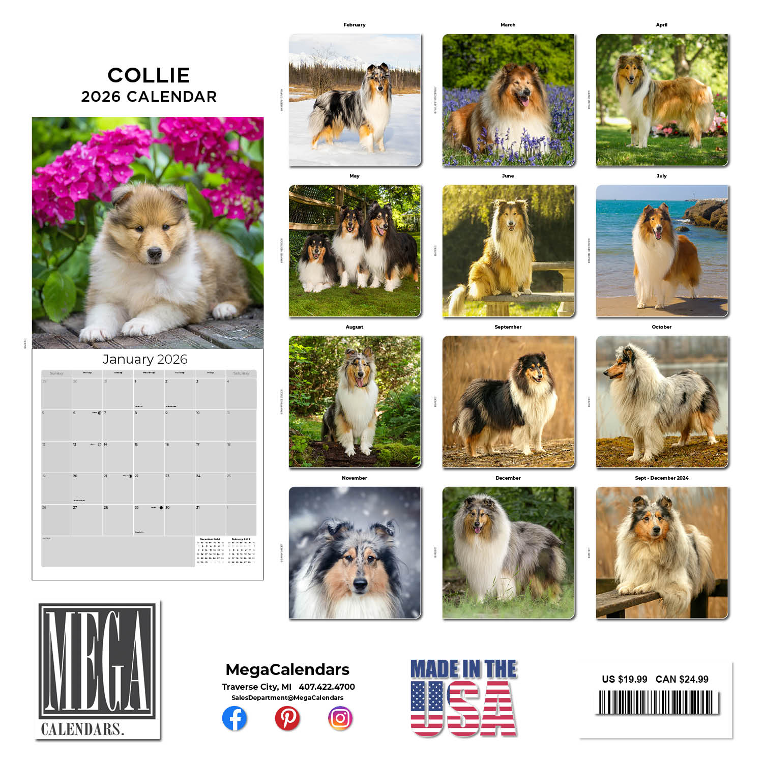 The perfect accent for fans of elegant and graceful dogs, the Collie Calendar 2026 showcases Collies in vivid photography each month of the year. Use the spacious grids in this 12 x 12 wall calendar to keep track of important appointments and occasions. Whether for home or office use, this calendar makes a delightful decorative item.