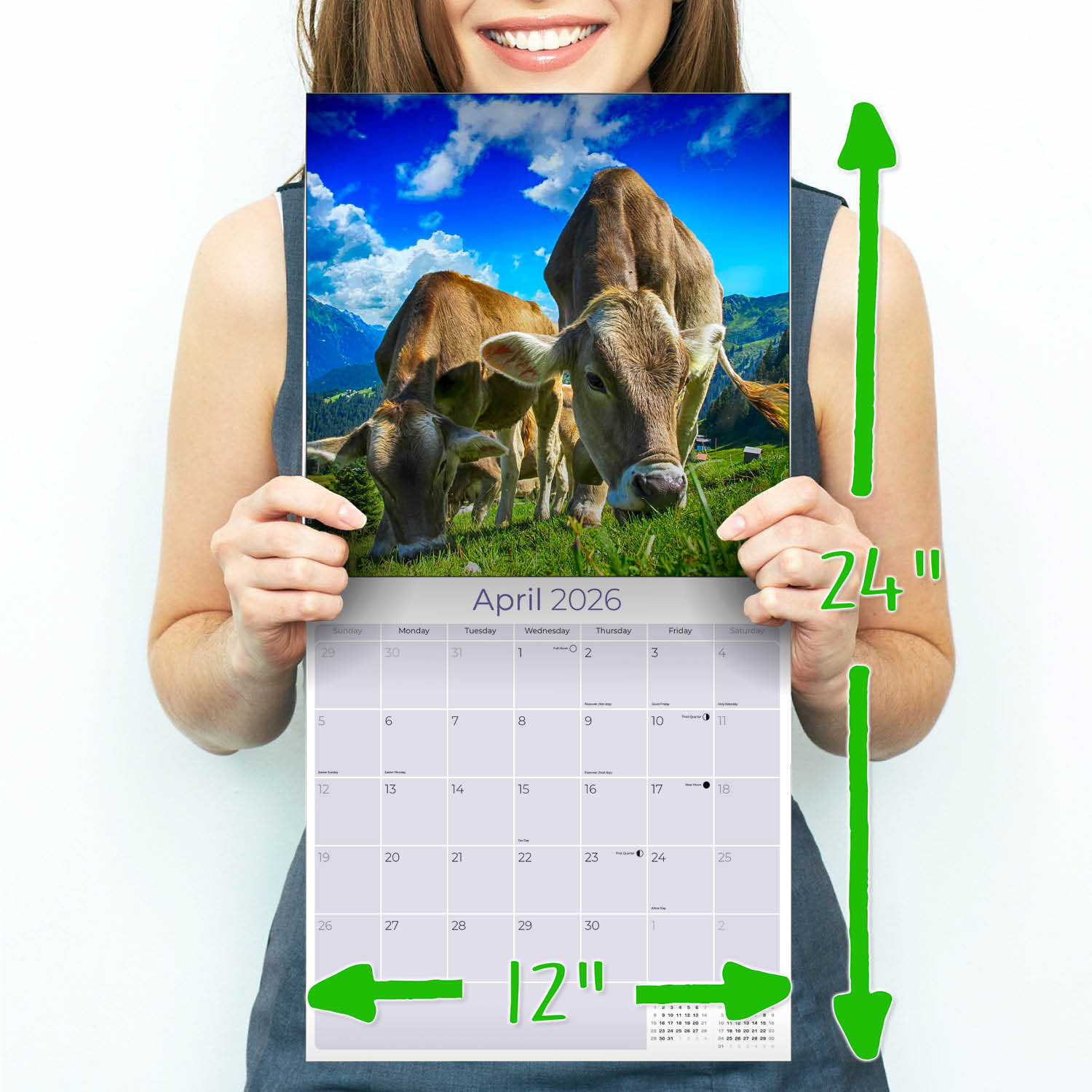 The Cows Calendar 2026 offers a glimpse into the lives of these wonderful farm animals. Keeping track of your important dates and occasions is easy with the large grid format with plenty of space to write in each appointment. Full color photos, artistic reproduction and quality paper make this calendar a welcome addition to home or office decor.