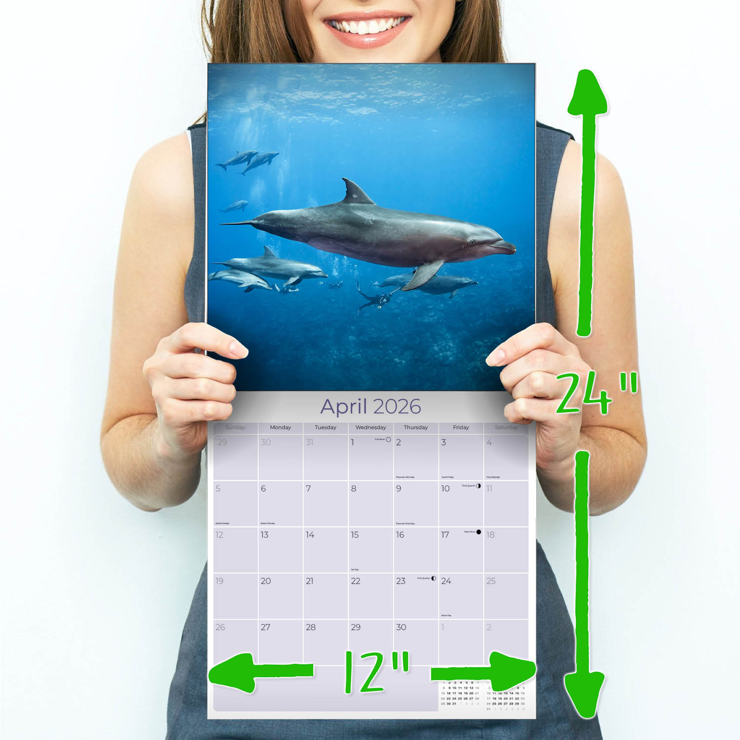Dolphins of the world are featured each month in the Dolphins Calendar 2026. Captured in vivid photography both above and under the water, this calendar will delight you with the antics of these intelligent animals. Each month has spacious grids where you can write down the dates and occasions in your upcoming schedule.