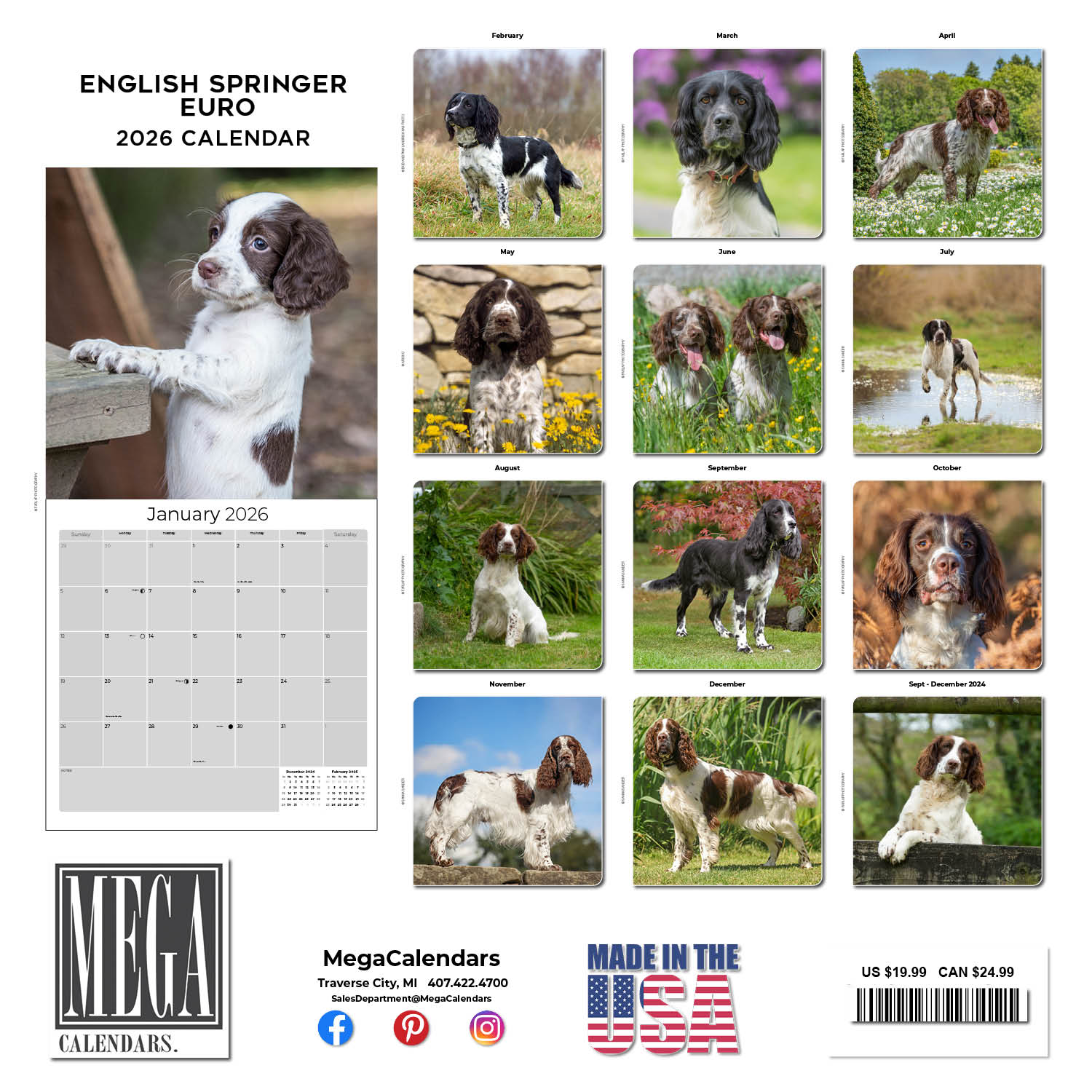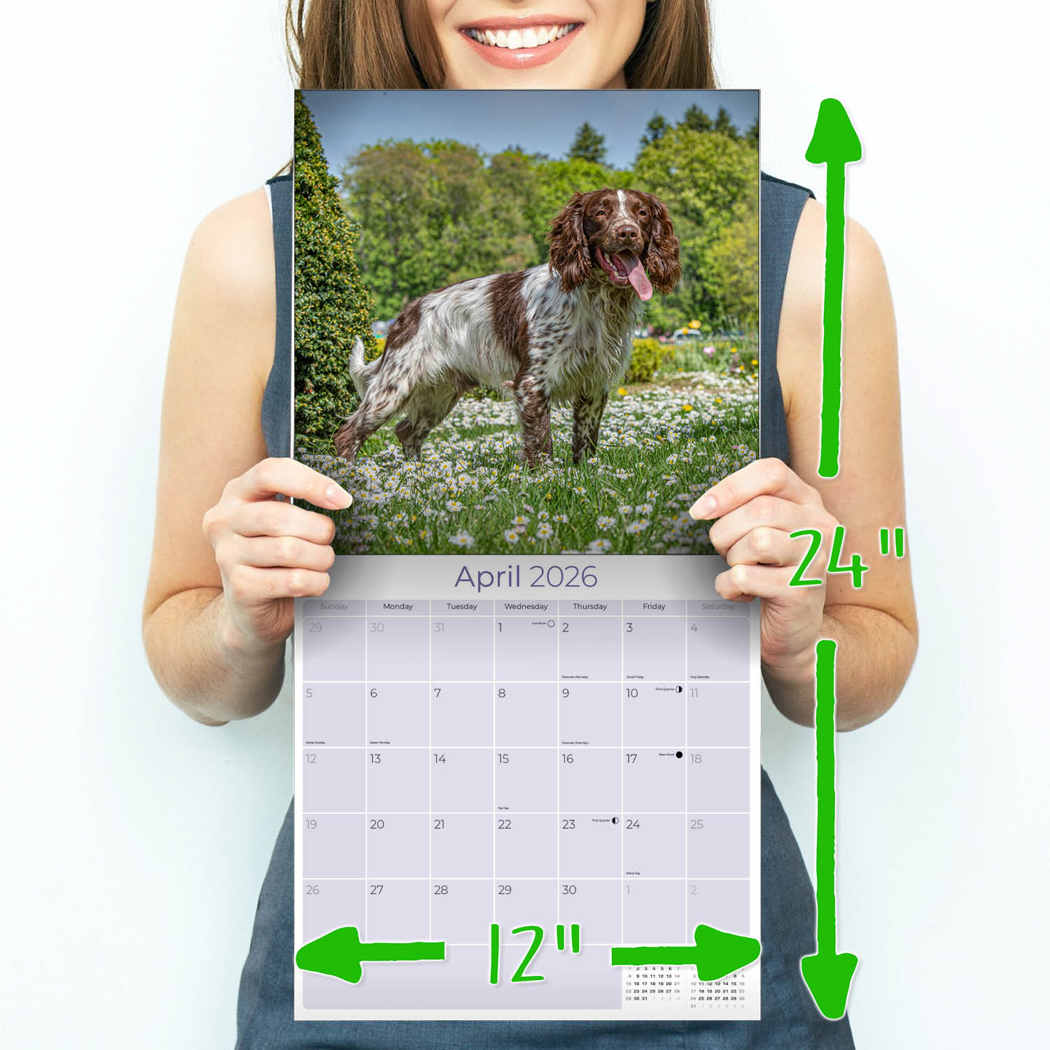 A gallery of the stylish and cheerful nature of this dog, the English Springer Spaniel Calendar 2026 will bring the energy of this breed into your home or office. Pictured in full color, each English Springer photo is accompanied by a large monthly grid which has enough space to easily enter all your important appointments and dates.