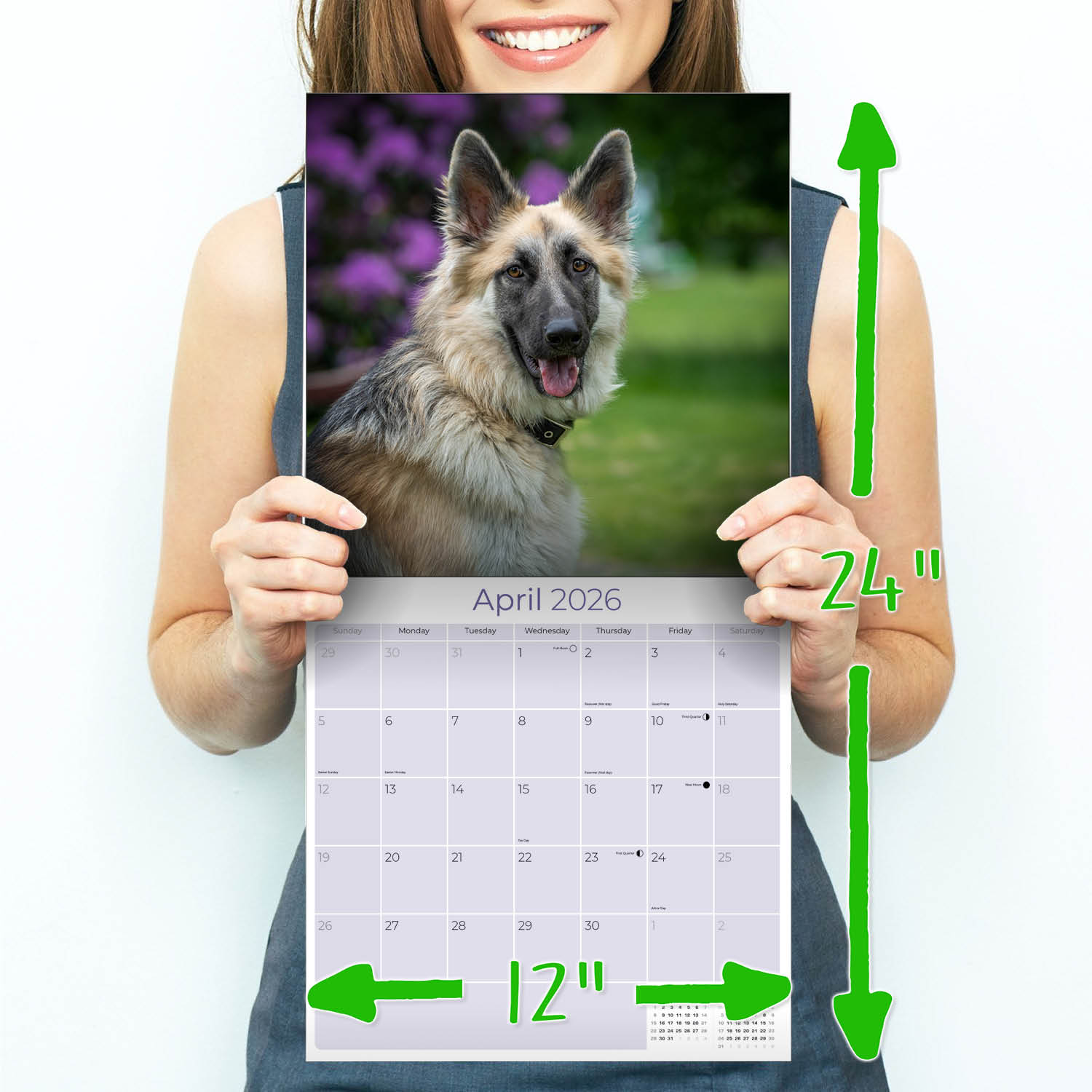 Each amazing color photograph in the German Shepherd Calendar 2026 brings the strength and dependability of this dog to your home or office wall. The spacious 12 x 12 format offers large grids to record all your upcoming appointments. This calendar is printed with Earth friendly printing processes and is printed on fine quality paper.