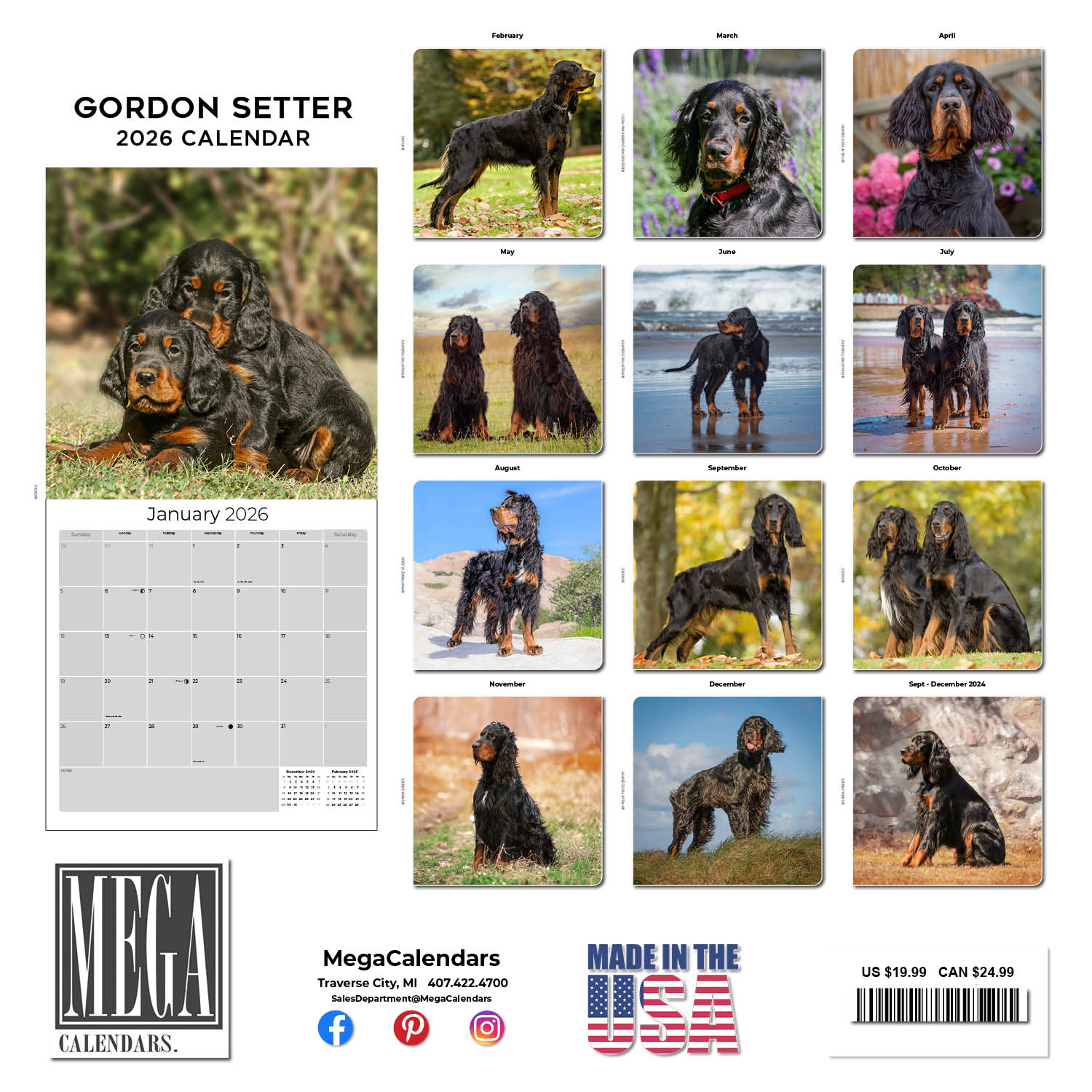 The Gordon Setter Calendar 2026 offers an invitation into the sporting world of this alert and confident dog. The large format calendar has large grids which are spacious enough to record all of your appointments and important dates each day. Full color photos, stunning reproduction and premium paper give this calendar art-book quality worthy of your home or office.