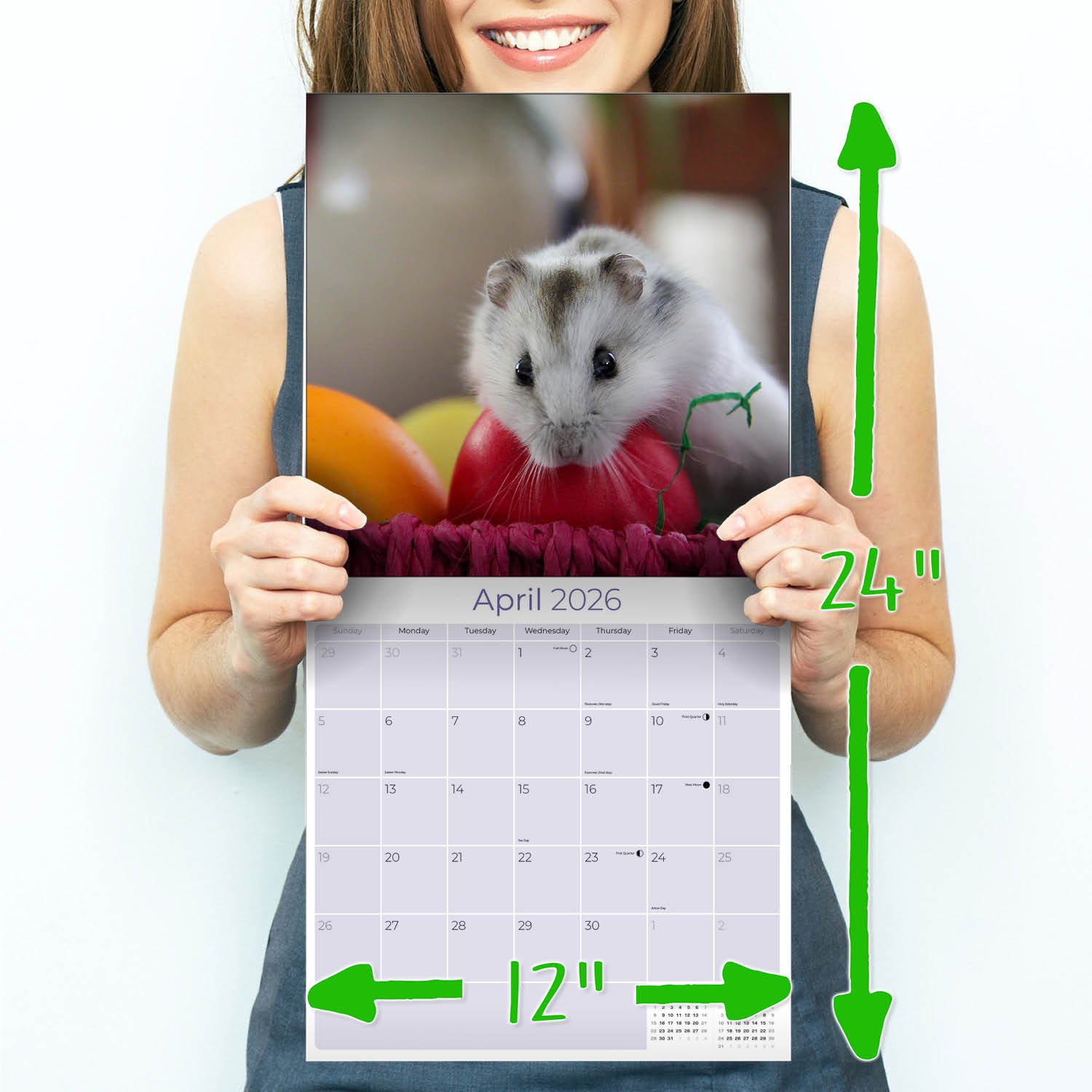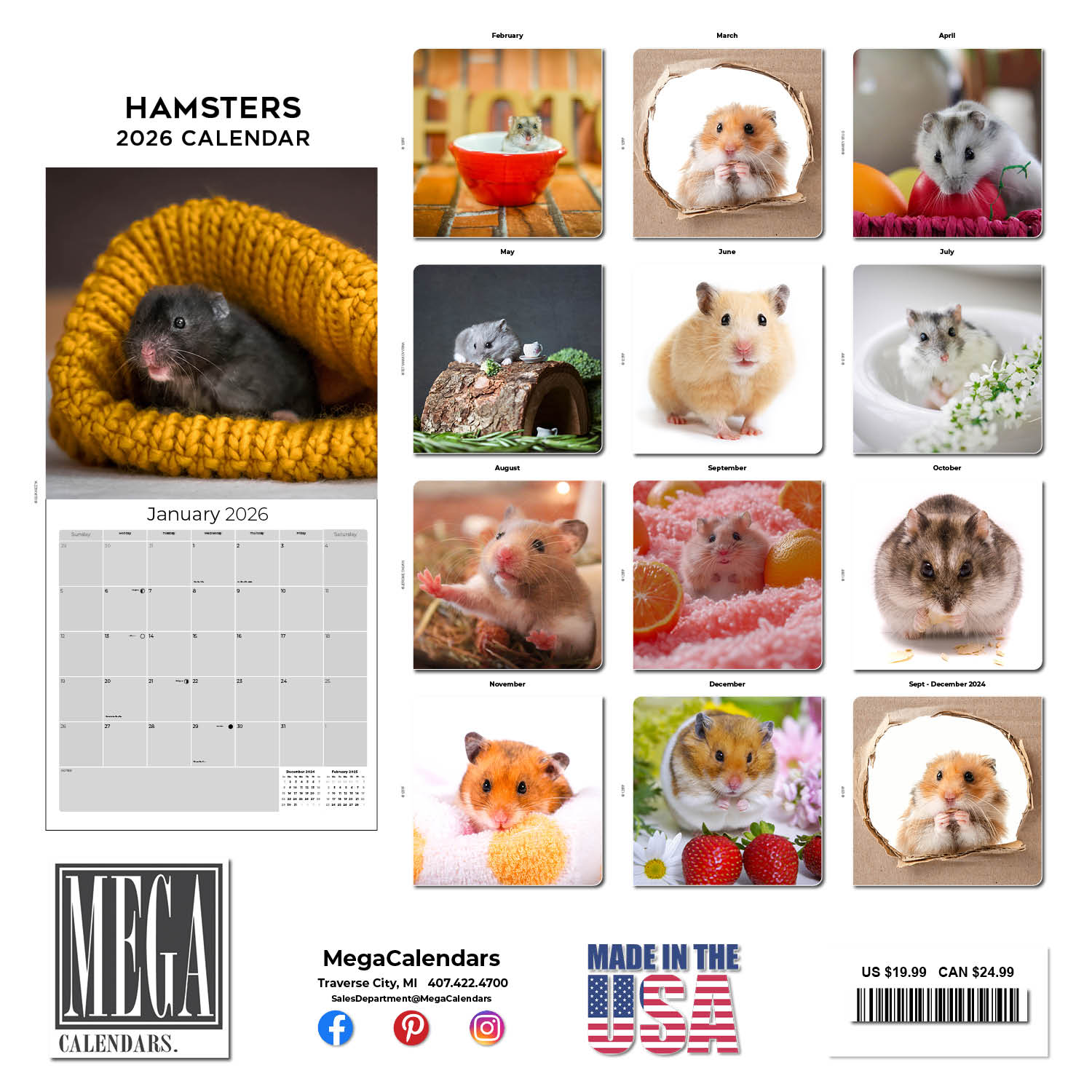 The Hamsters Calendar 2026 is the perfect calendar for the hamster lover in your home. Make scheduling and recording appointments and special days easy using the large grid format with enough room to enter all your activities. Enjoy having these adorable little creatures accenting your home or office decor with thirteen special photos that will melt your heart.