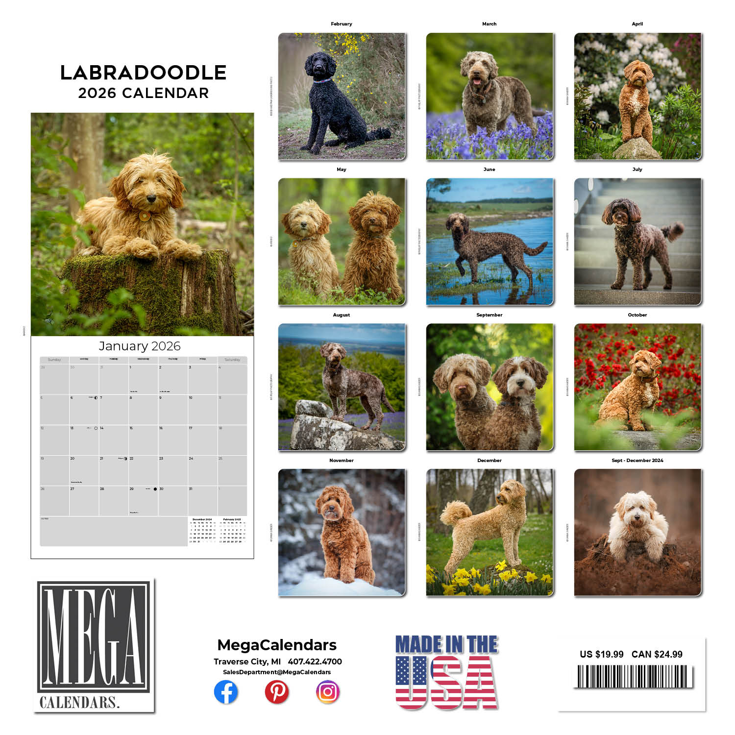 With thirteen photographs illustrating their charming personalities, the Labradoodle Calendar 2026 is a visual treat every month of the year. Use the spacious grids in this 12 x 12 wall calendar to keep track of important appointments, birthdays and anniversaries. Whether for home or office use, you will enjoy decorating with these smart, energetic pets.