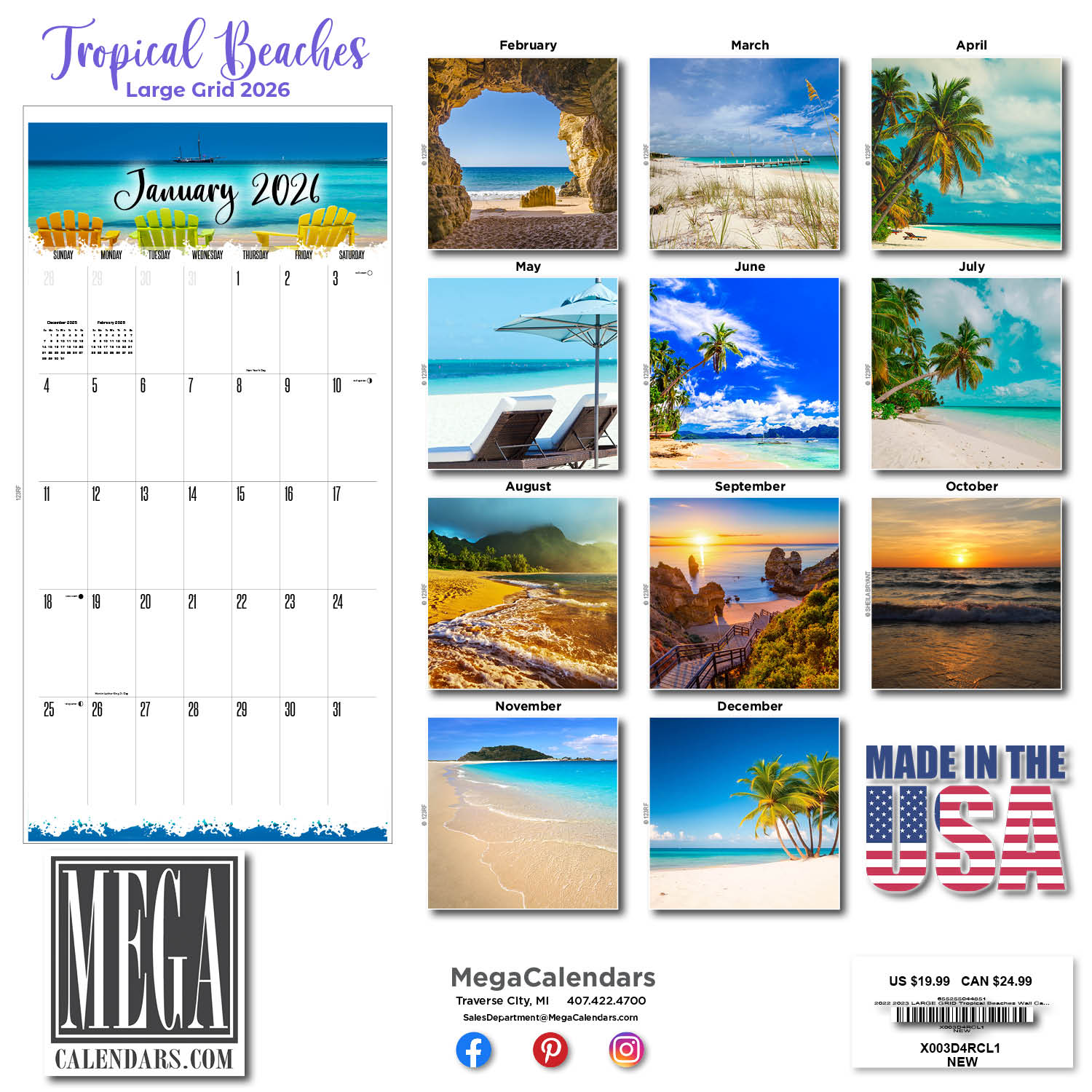 Large Grid - Tropical Beaches Wall Calendar 2026