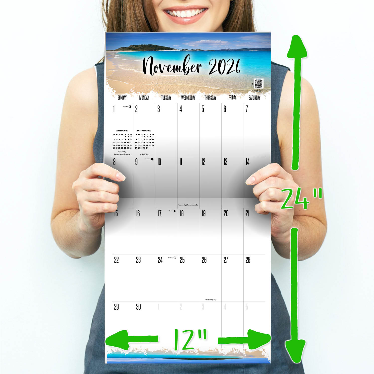 The Large Grid Tropical Beaches Calendar 2026 not only features fabulous photography sure to brighten your day, but also includes a wide open grid with ample space to jot down all of those special dates and anniversaries.