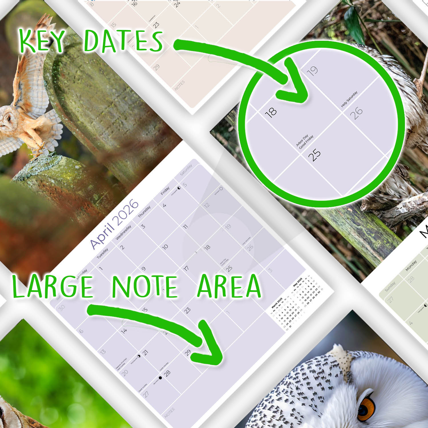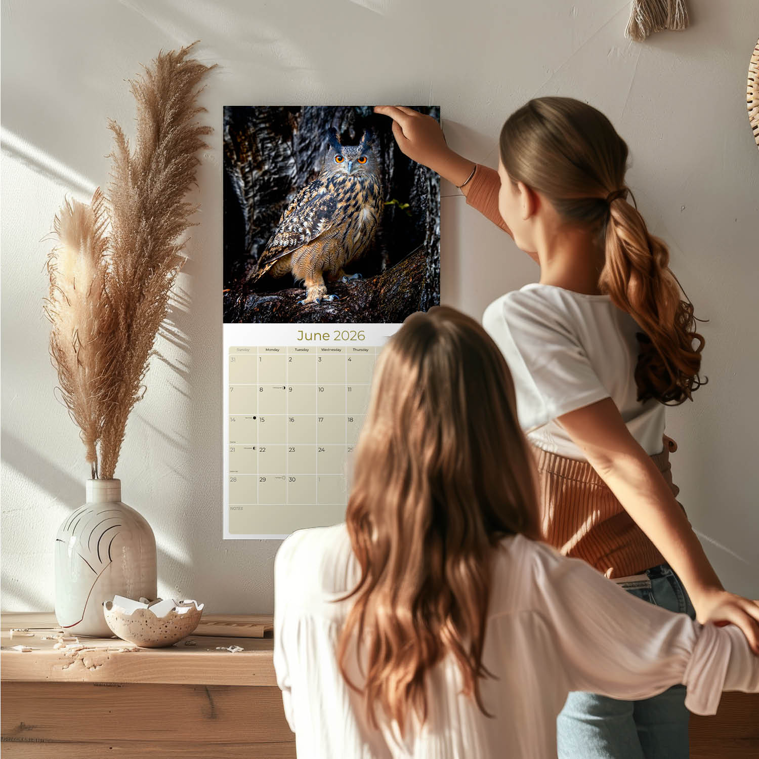 The Owls Calendar 2026 gives you unprecedented insight into the natural habitat of these alluring creatures. Each month includes large grids where you can keep all your appointments and dates in order. Printed on high quality paper in 12 x 12 format, the calendar includes thirteen professional images of these nocturnal raptors for your home or office.