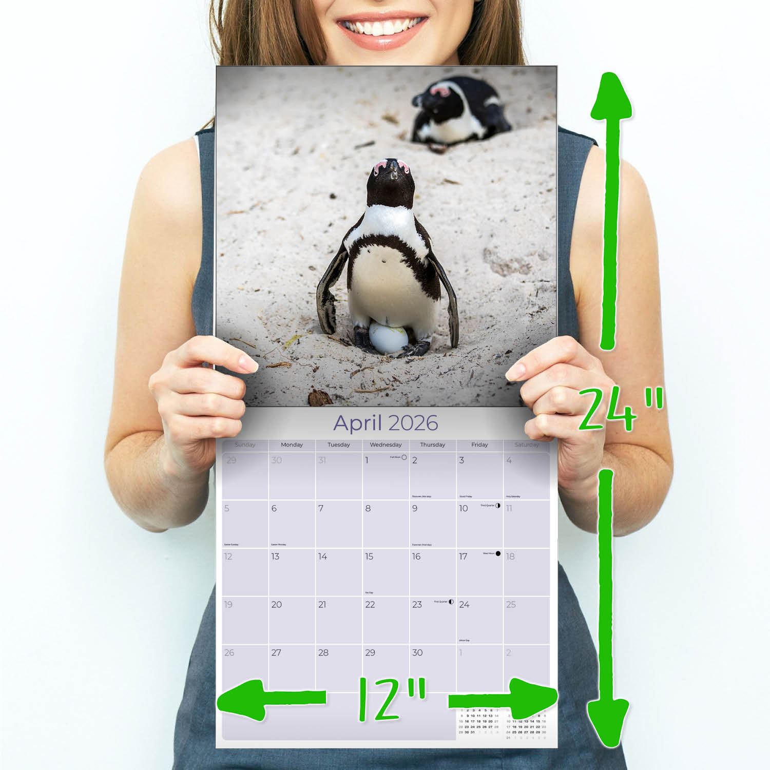 Sporting their tuxedo-like appearance, the penguins in the Penguins Calendar 2026 parade through the year in stunning full color photos. You will appreciate the large grids each month that have enough room to schedule all your upcoming social engagements and important appointments. This calendar is 12 x 12 and makes a helpful accessory for your home or office space.
