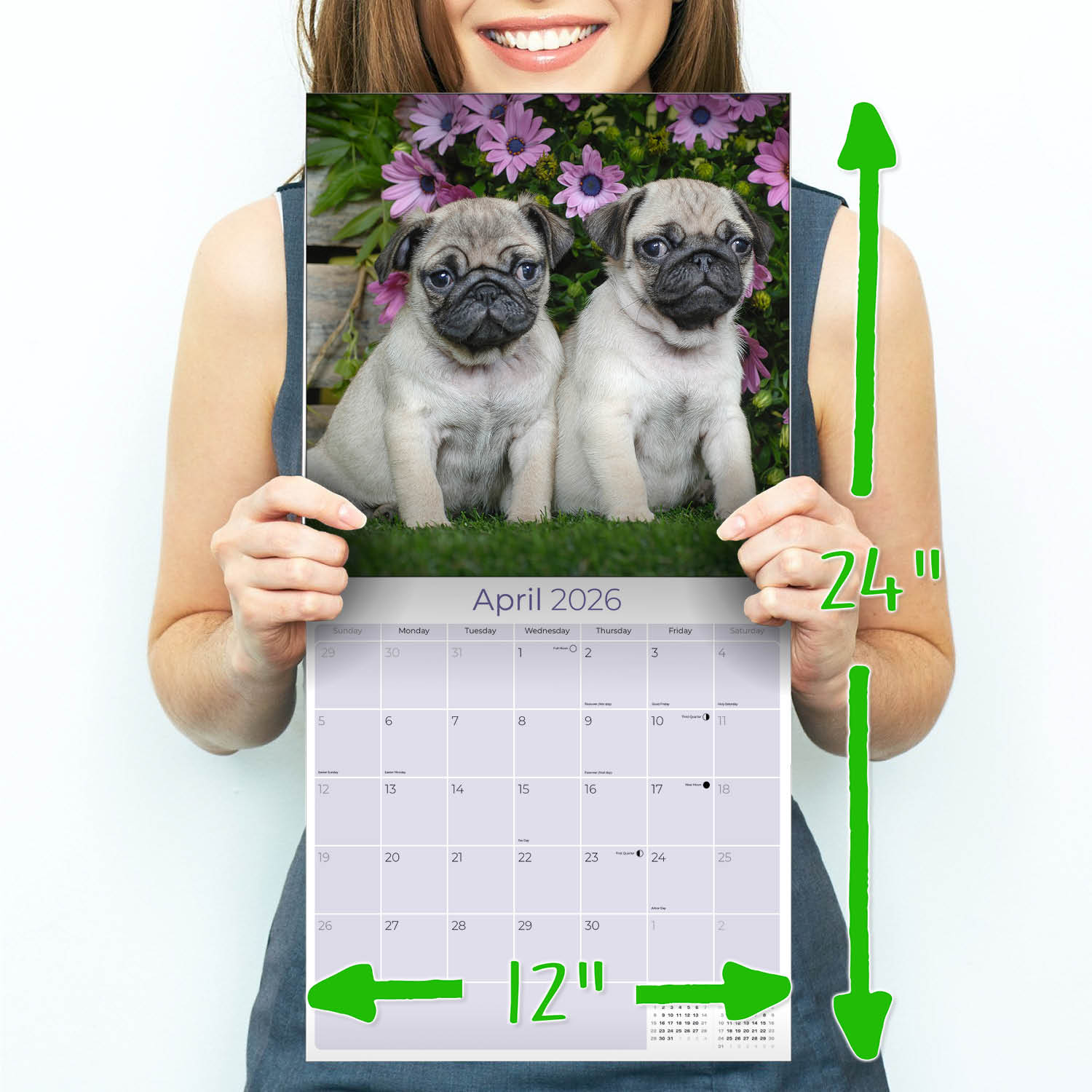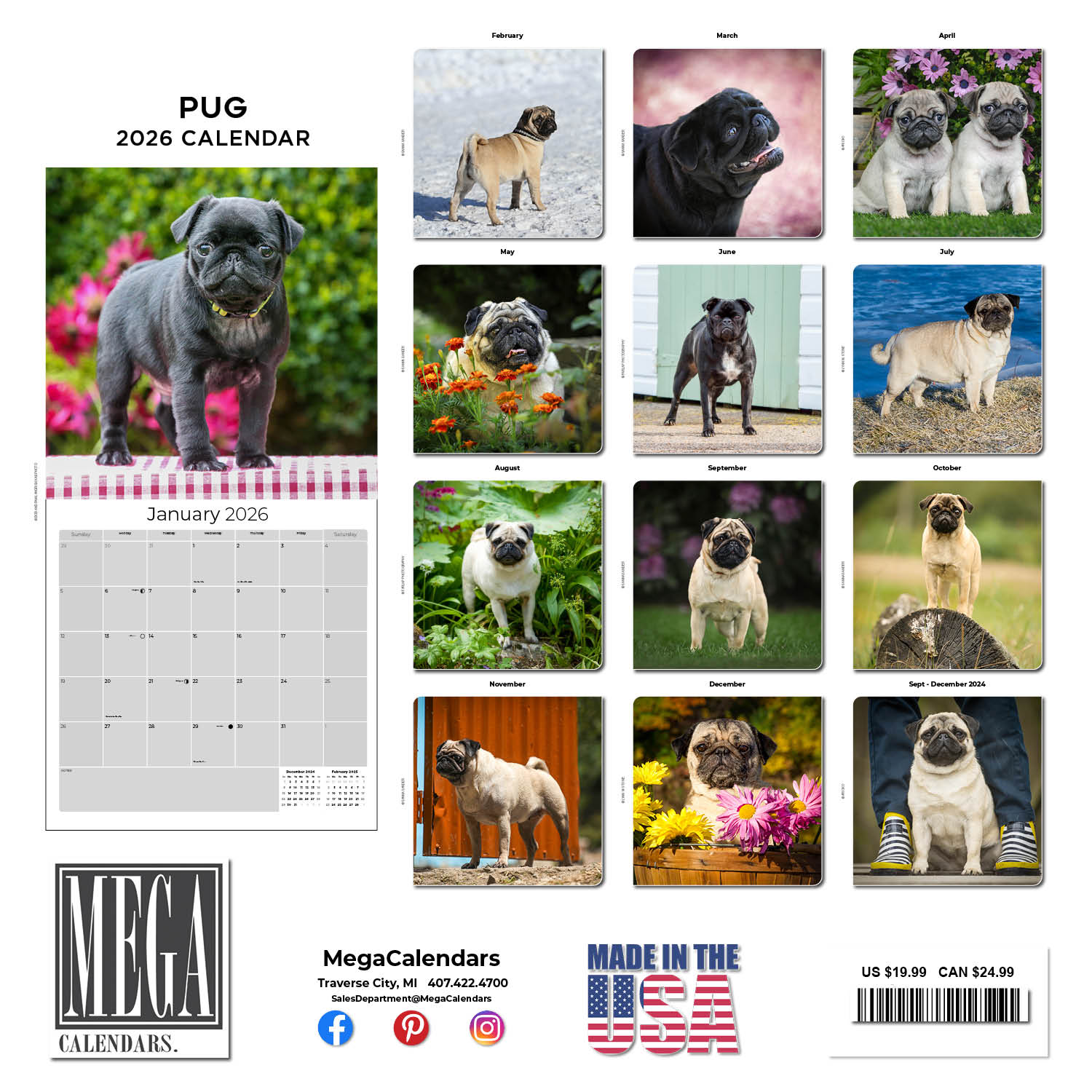 Known as a people-pleaser, the Pug is an outgoing dog and the subject of the Pug Calendar 2026. This calendar captures the playfulness of this beloved dog in professional photos that make an ideal accent for your home or workplace. Large daily grids make it easy to record your appointments and stay on top of your schedule.