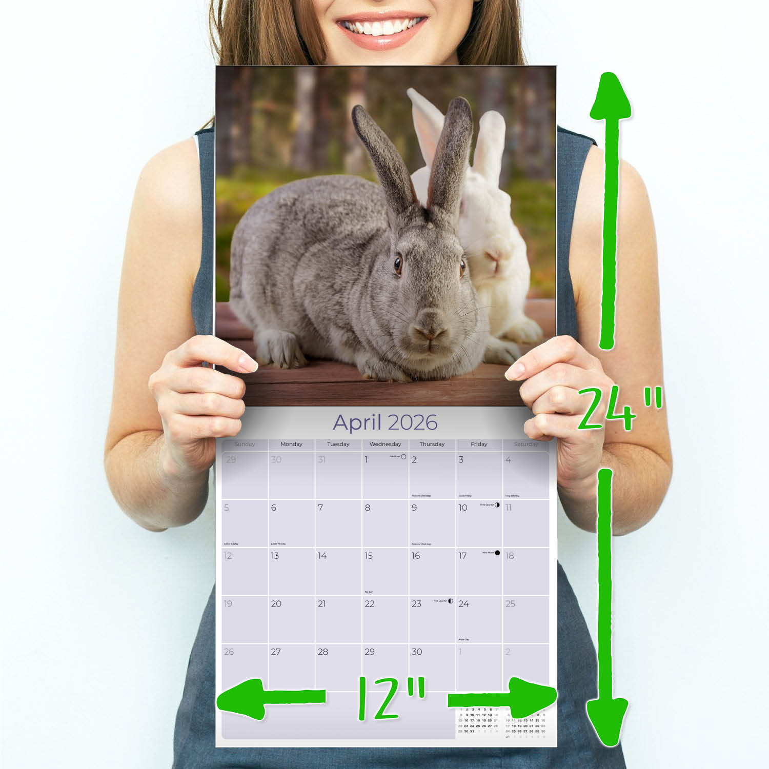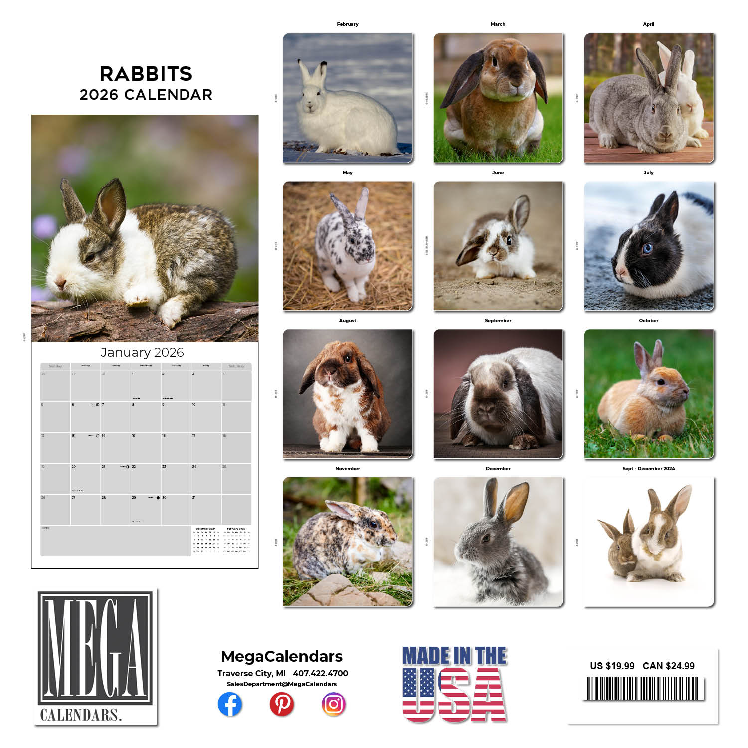 The Rabbits Calendar 2026 presents the most irresistible rabbits in adorable poses. The spacious 12 x 12 wall format offers large daily grids where you can record all of your upcoming appointments. This calendar makes a charming addition to your home or workplace decor with thirteen full color photos of these quiet pets.