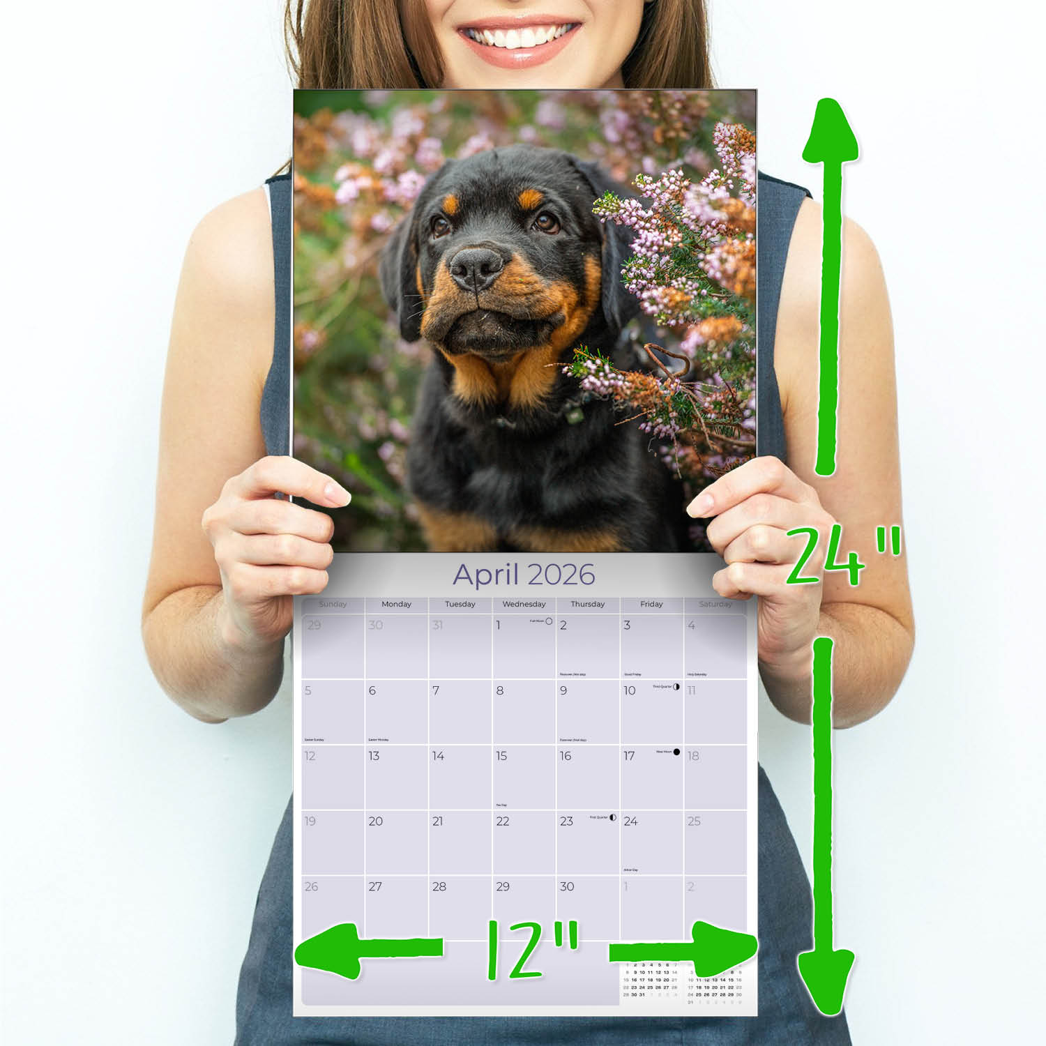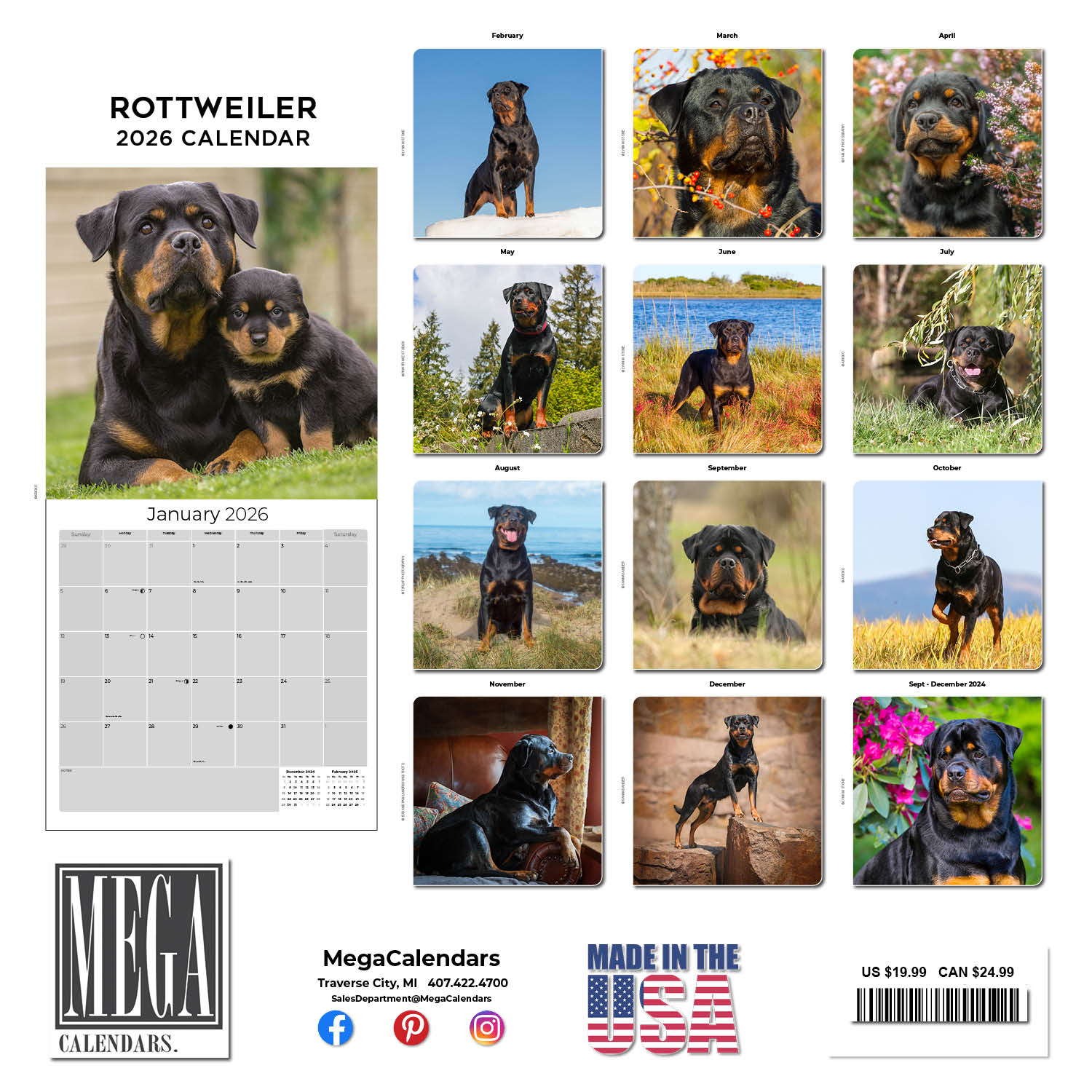 The Rottweiler Calendar 2026 beautifully captures the power and the intelligence of this hard working breed. The spacious 12 x 12 format offers large daily grids where you can record all your upcoming appointments and important occasions. This calendar makes a tasteful and artistic addition to your home or workplace d_cor.