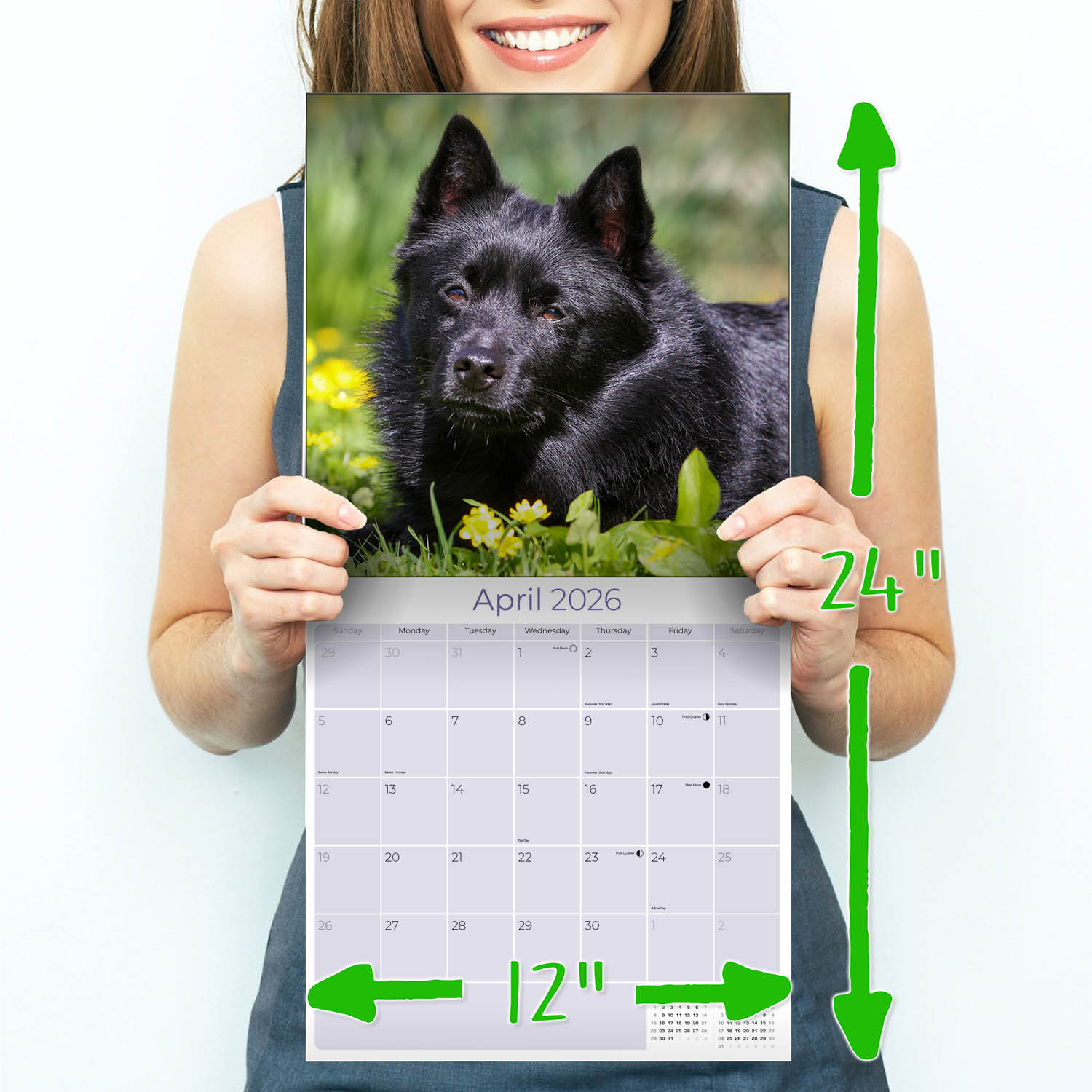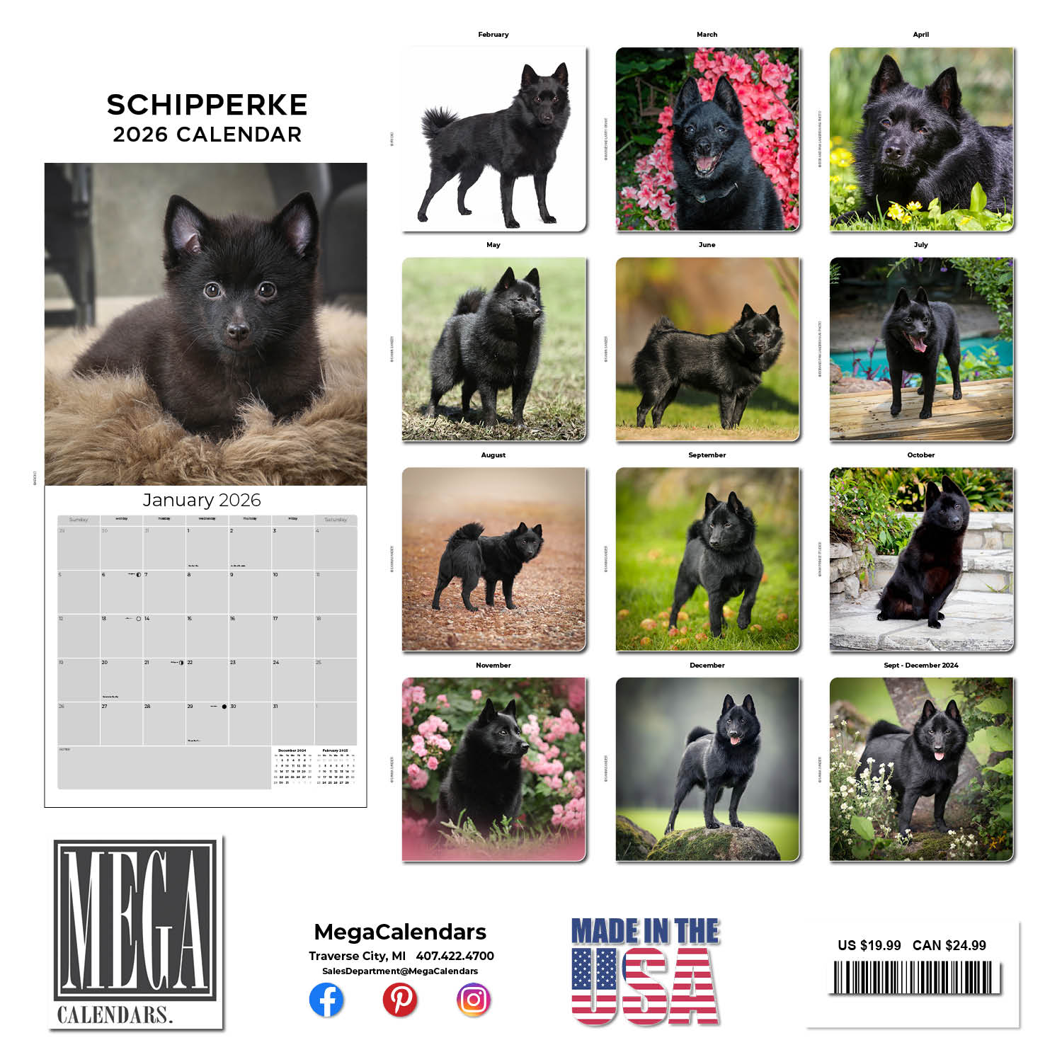 The perfect home or office accent for fans of this breed, the Schipperke Calendar 2026 features thirteen large color photos Schipperkes for you to admire and enjoy. It also contains monthly grids that are spacious enough to record all your appointments and occasions. Printed in a large 12 x 12 format, this calendar is a testament to this enthusiastic watchdog.
