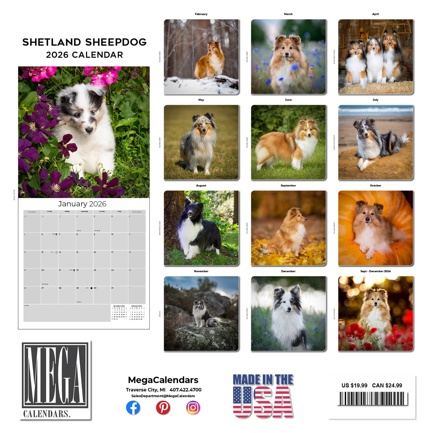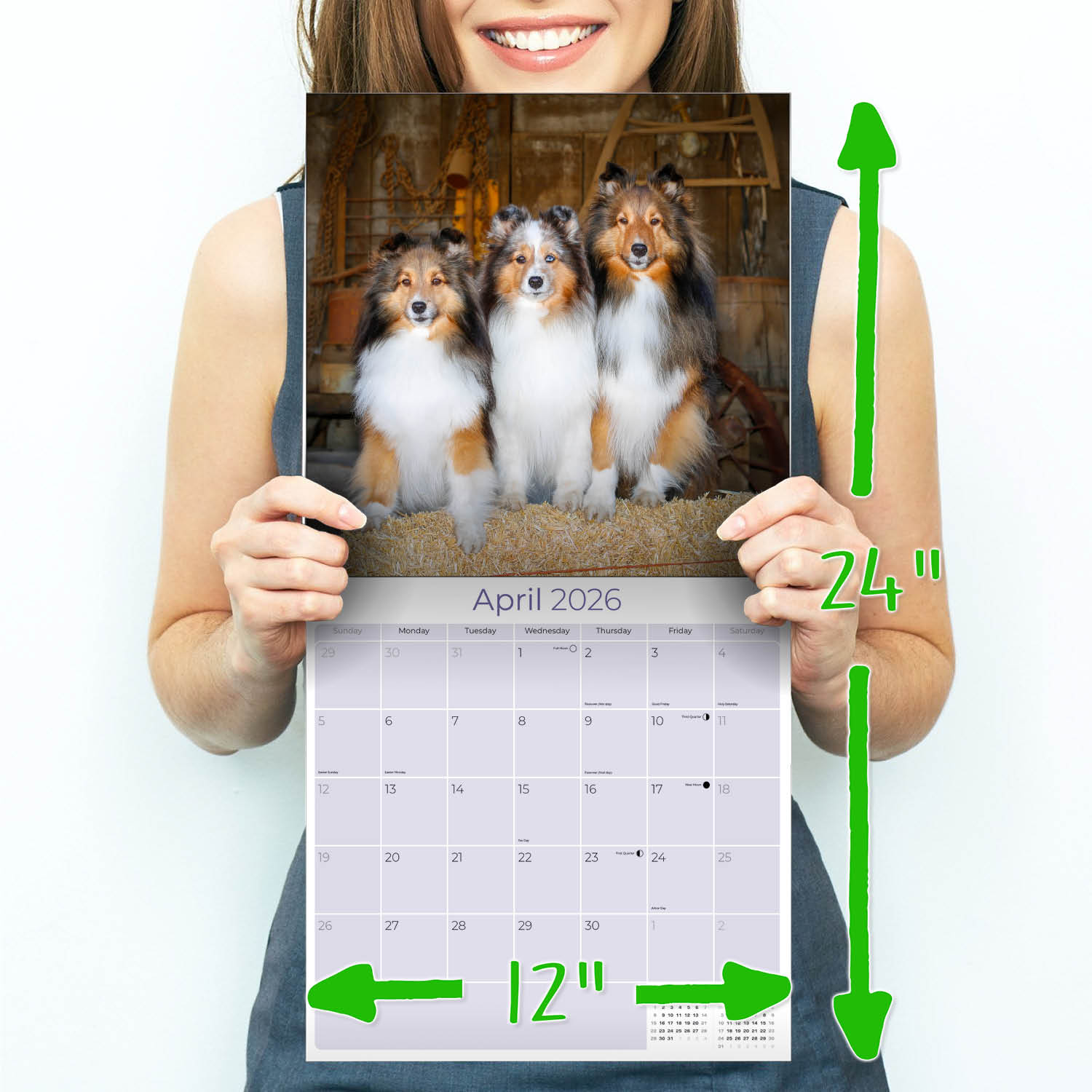 The perfect gift for fans of the breed, the Shetland Sheepdog Calendar 2026 showcases these devoted and agile dogs in stunning color photography. This calendar is a great organization tool with grids that are spacious enough to enter all your upcoming appointments. Suitable for home or office, these art quality photos can be framed when the month is over.