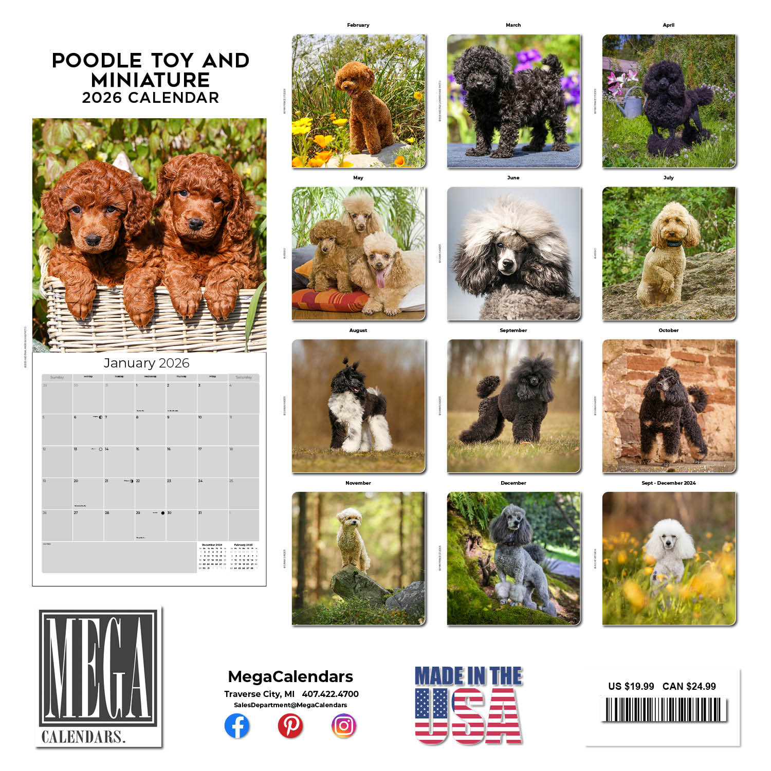 Smart, active and obedient the Poodle is lovingly photographed for the Toy & Miniature Poodle Calendar 2026. This wall calendar offers large daily grids which are large enough for recording all your dates and appointments. It has art-quality reproduction and stunning photos that bring the lovability of this popular breed to your home or office d_cor.
